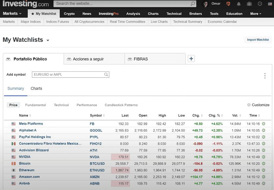 Vamos a comenzar revisando qué está pasando con la bolsa y para eso uso muchas páginas, una de ellas es https://investing.com.