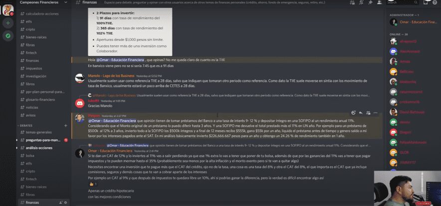 También durante el día en mi oficina me meto al grupo privado de Discord, te voy a mostrar mi pantalla para que lo puedas ver.