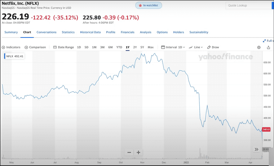 No es la primera vez que pasa, la acción de Netflix de su máximo histórico de $700 dólares han bajado más de 70%.