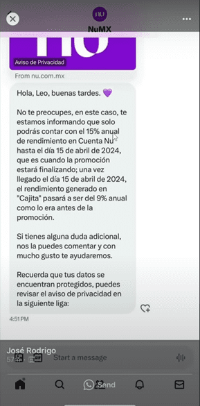 Pero desafortunadamente desde el inicio siempre avisaron qué esta tasa era una promoción y qué esta promoción iba a tener una vigencia al 15 de abril de 2024.