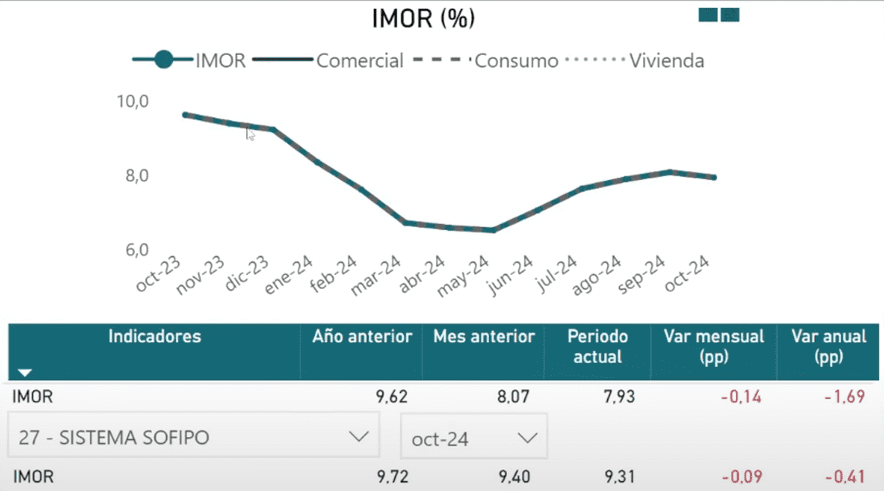 Puedes ver como estaba cercano al 10%, en 2023 fue mejorando y en 2024 se encontraba en el 7.93%.