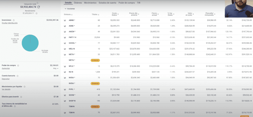 Te voy a mostrar una imagen de mi portafolio en la bolsa que ya vale casi 4 millones de pesos.