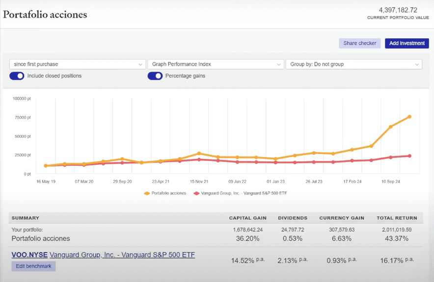Te voy a mostrar una gráfica de cómo se ve mi portafolio desde 2019 a la fecha para que veas como han sido mis rendimientos.