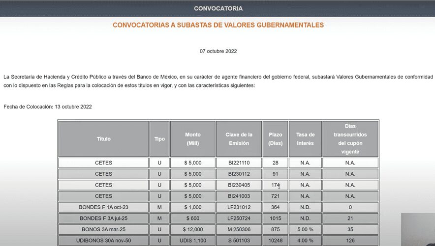 Es cuando Secretaría de Hacienda y Crédito Público avisan qué es lo que van a subastar el siguiente martes.