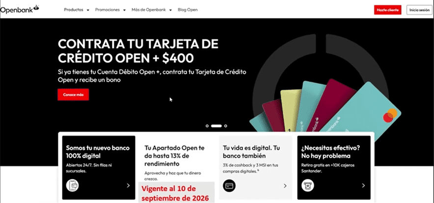 Ahora te dice que tu apartado open te da hasta 13% de rendimiento con una vigencia hasta el 10 de septiembre de 2026.