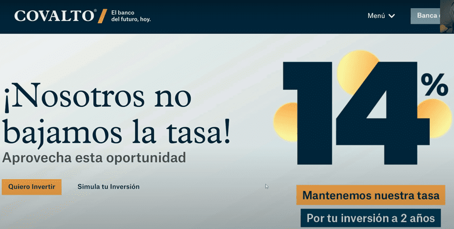 Este es el único banco que te permite invertir a un plazo de 2 años amarrando una tasa del 14%, por lo general otros bancos solo te permiten invertir a plazos menores.