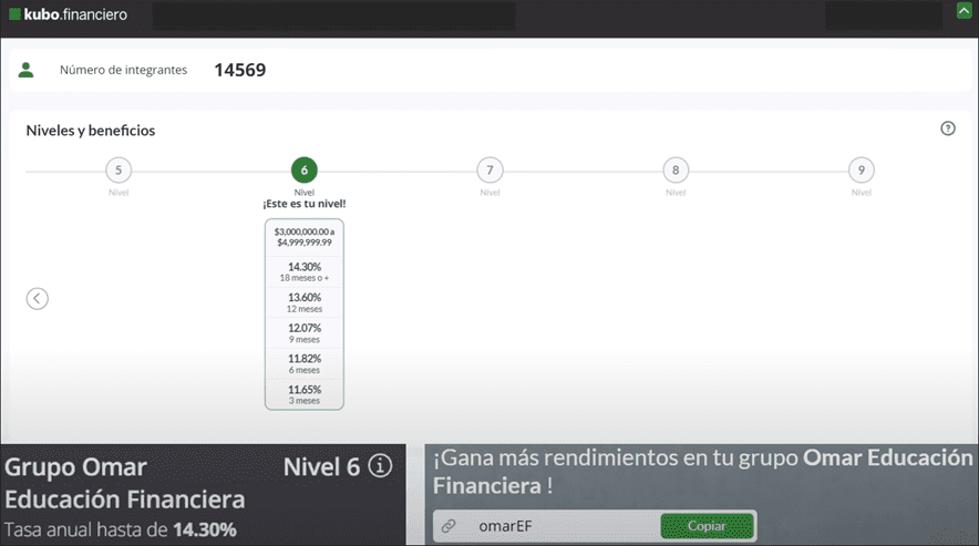 Mi grupo de Kubo Financiero ya tiene 14,569 personas, ya somos un grupo muy grande y ahorita tenemos la tasa del 14.30% a 18 meses.