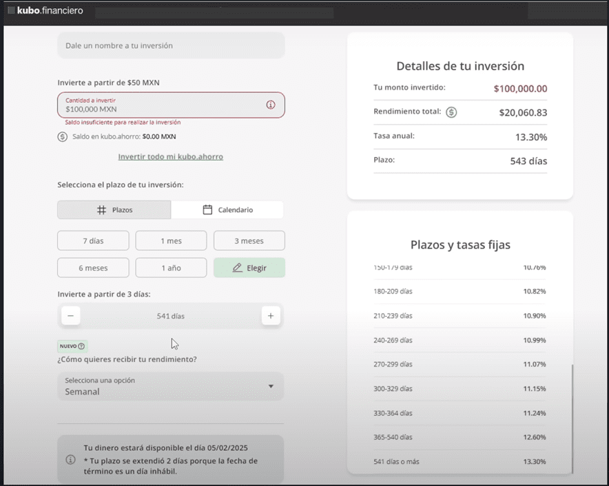 La inversión con la tasa del 13% es una SOFIPO que ya conocíamos y se llama Kubo Financiero.