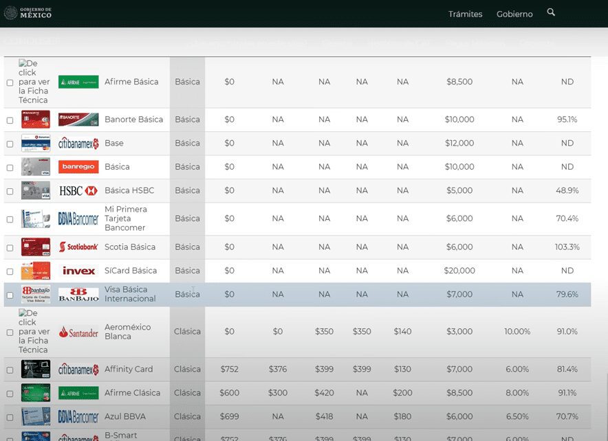 Vamos a comenzar comparando los bancos por sus tarjetas de crédito, toda esta información desde el sitio oficial de la CONDUSEF.