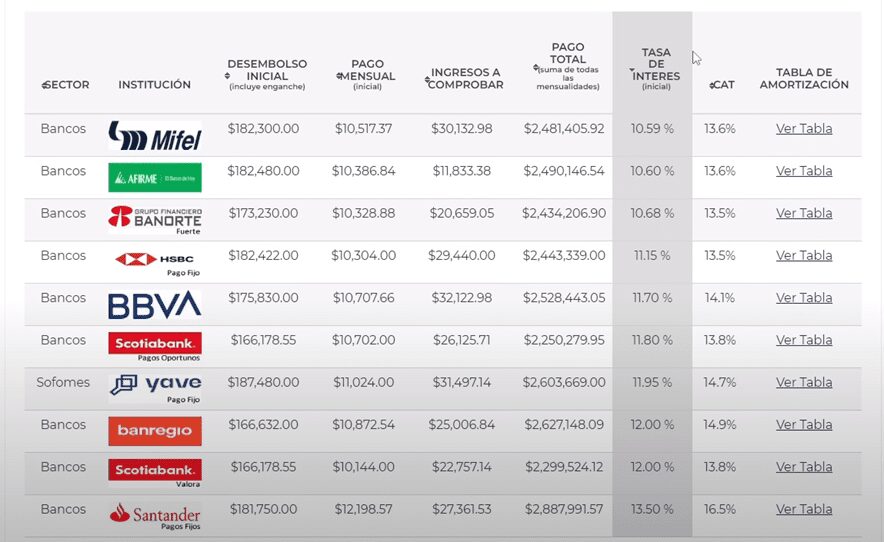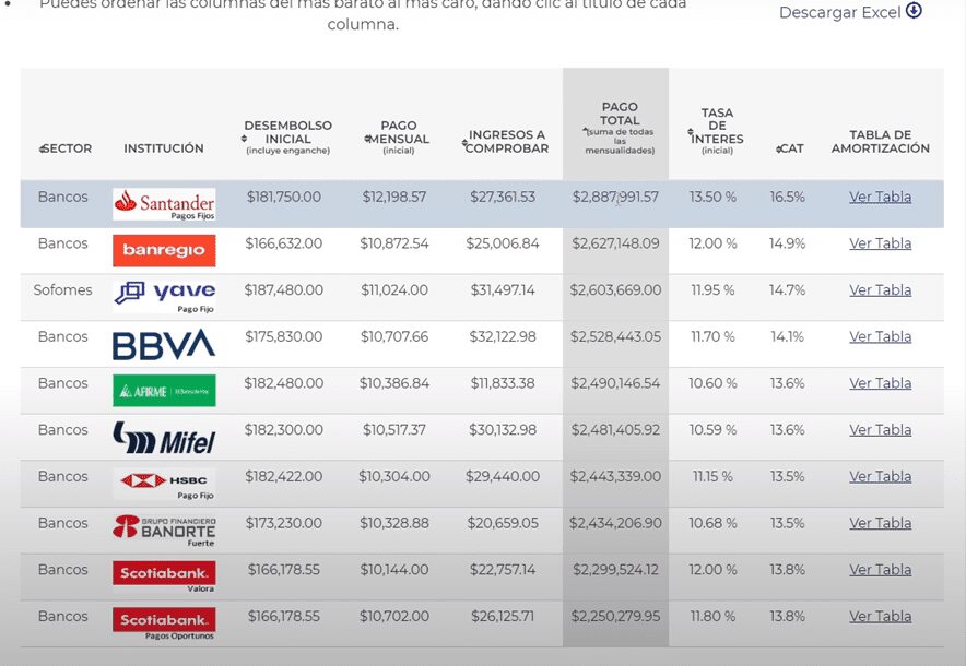 También lo puedes filtrar por la pura tasa de interés que te dan al inicio o filtrarlo también por un dato muy importante que es él CAT.