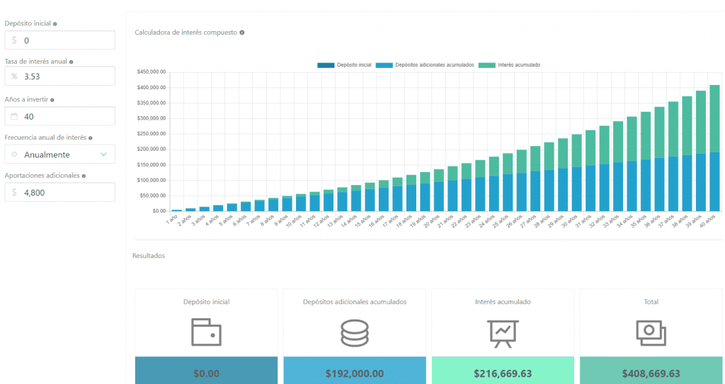 Lo vamos a ser igual a 40 años aportando $4,800 pesos al año.