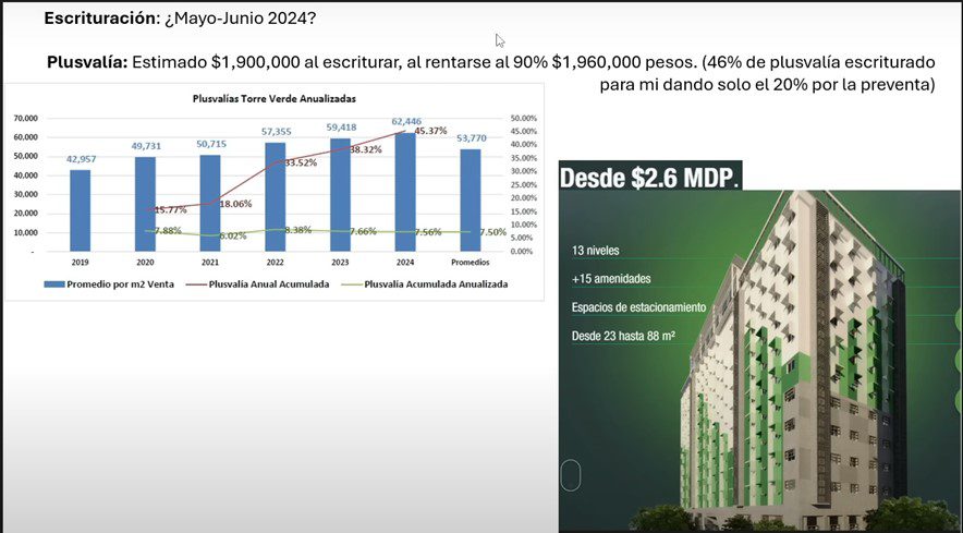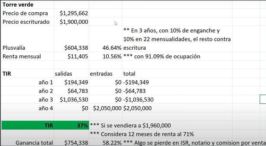 Esta es una plusvalía de $600,000 pesos qué equivale al 46% sobre la inversión total.