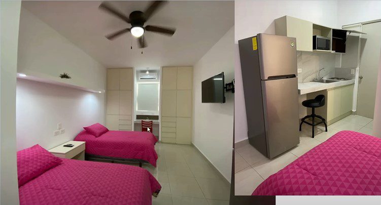 Este es un poco más lujoso que el de Las Residencias, pero es más caro también, aquí si tienen un espacio para sala y pueden tener uno o varios cuartos.