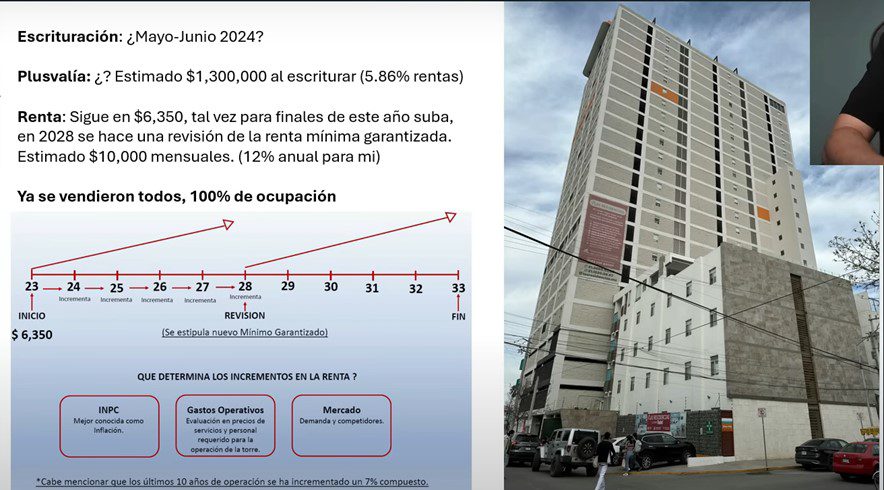 En cuanto a la renta, no han subido desde que me lo entregaron, me pagan $6,350 pero se estima que este año 2024 empiece a subir como ves en la imagen.
