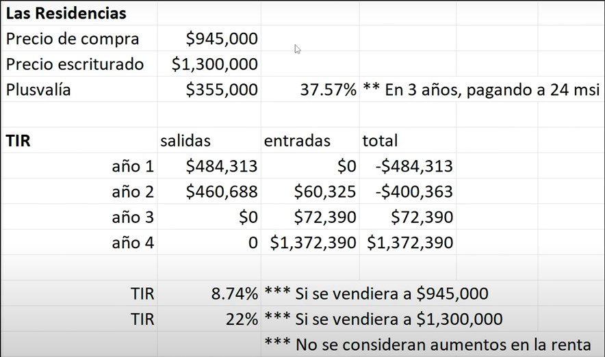 Pero cuando pregunté me dijeron que aproximadamente ya que se escriture estiman que la unidad que yo compré en $945,000 pesos ya tenga un valor de $1.3 millones de pesos.