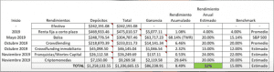 Ahora si nos vamos a Crowdlending tengo invertidos $233,000 pesos con una ganancia de $14,000 pesos.