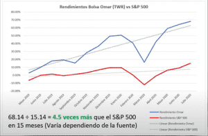 Esto es un rendimiento anualizado de 51% y si lo comparamos con el S&P 500 realmente no hay mucho que comparar, el acumulable del S&P 500 es del 15% y el que tiene anualizado es de 5%.