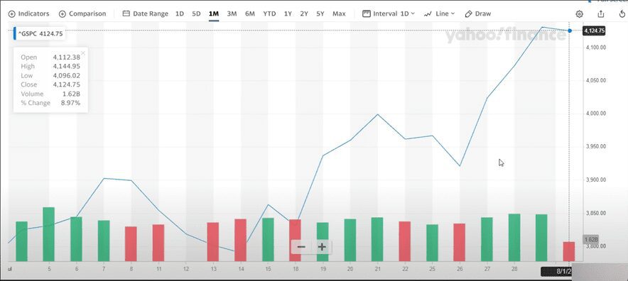 La bolsa de valores tuvo un excelente mes en julio, el S&P 500 subió alrededor del 9%.