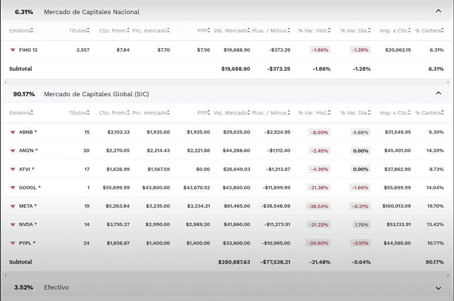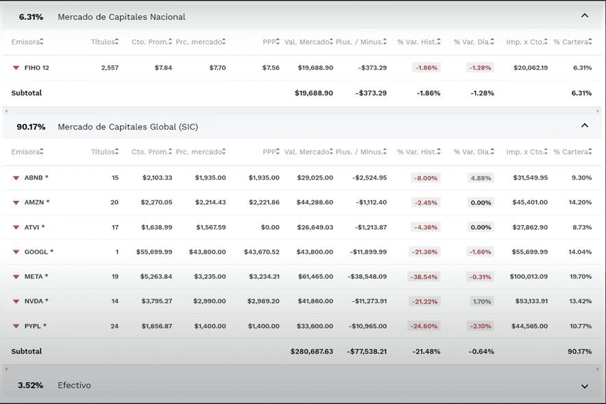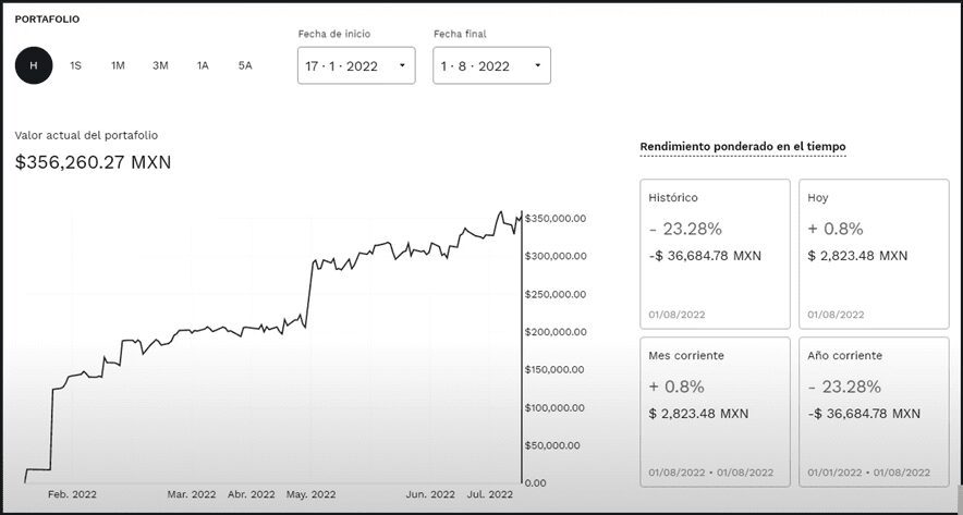 El peor mes para mis inversiones fue en junio de 2022, yo tenía -32% en el portafolio de la bolsa y eran equivalentes a -$76,000 pesos en pérdidas.