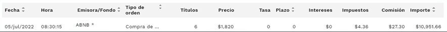 Fueron 6 acciones las que compré en $1,820 pesos por acción.