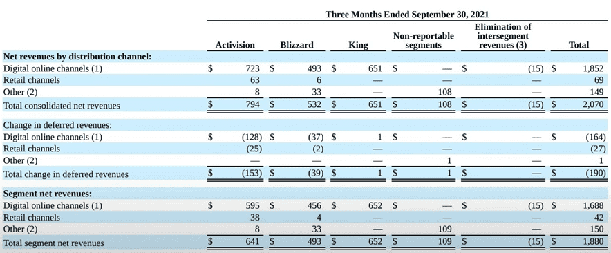Luego lo que es el segmento de Blizzard tiene $532 millones de dólares en ingresos, también mayormente por la vía digital.