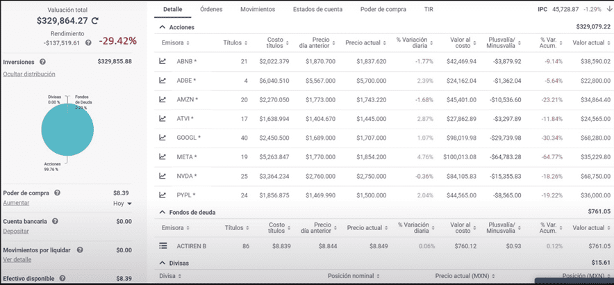 En noviembre de 2023 tenía mi portafolio con $69,000 pesos de plusvalía y las acciones iban bastante bien, ya casi todas estaban en verde.