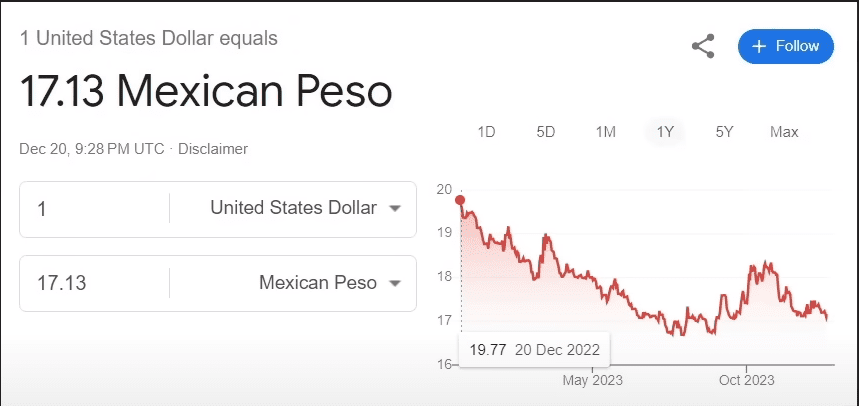 A pesar de que hace un año el dólar estaba a $20 pesos y hoy esta a $17 pesos tengo buena plusvalía.