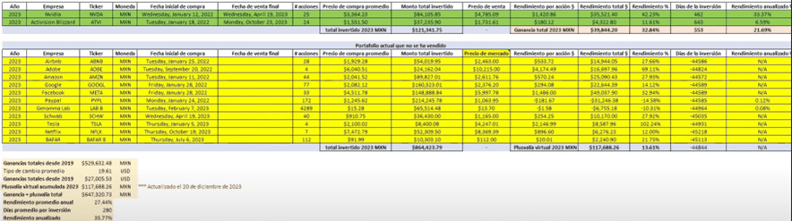 Te voy a compartir como va mi portafolio de inversiones en bolsa a finales de diciembre de 2023, mi portafolio de ETFs y las inversiones en renta fija que estoy haciendo para juntar $200,000 en 2026.
