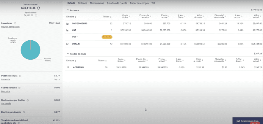 Llevo una aportación total de $72,000 pesos y el portafolio ya vale $78,000 pesos, quiere decir que llevamos una plusvalía de $6,000 pesos.
