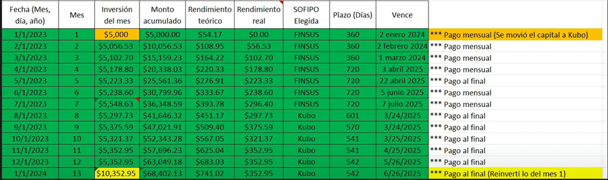 Ya venció la primera inversión que hice el mes uno, fue una inversión a 12 meses y ese capital lo reinvertí ahora en Kubo Financiero.