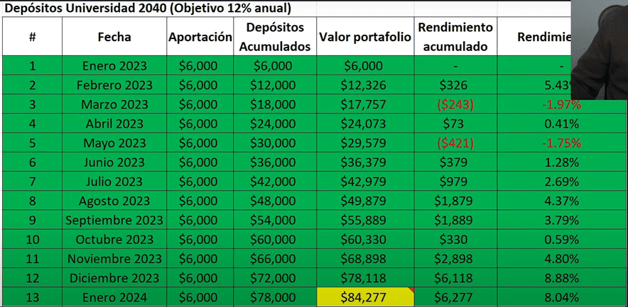 Pero ahorita el portafolio lleva un rendimiento acumulado de $155,000 pesos.