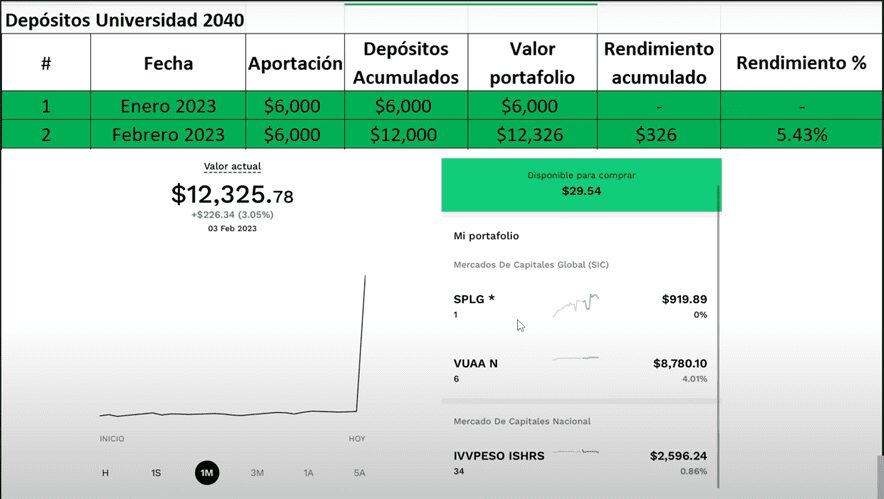 De los $12,000 que le he puesto lleva una ganancia de $325 pesos que equivale a un rendimiento del 5% en un mes.