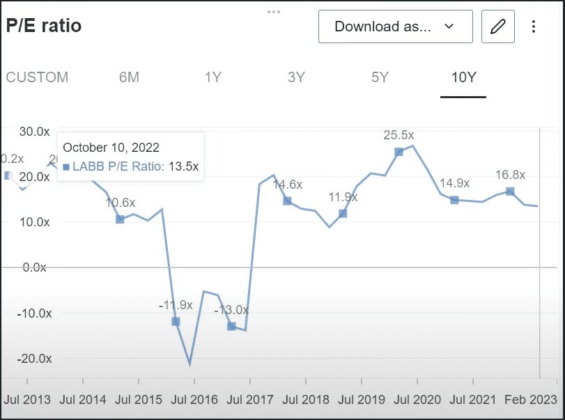 Podemos ver como en algunos momentos andaba por el 20, cuando tuvo las pérdidas estuvo en números negativos y en otros años 14, 12, 25, 15, 16 y ahorita está a 13.5.