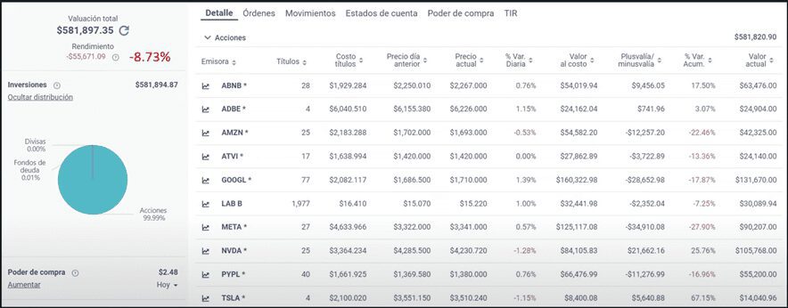 Entonces, mi portafolio ahorita vale $581,000 pesos que es un rendimiento de alrededor -8%.