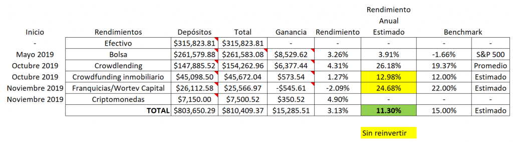 Espero cuando pase más tiempo, tener un rendimiento anualizado de 11% a 15% anual. Si deseas ampliar esta información te invito a ver el siguiente video.