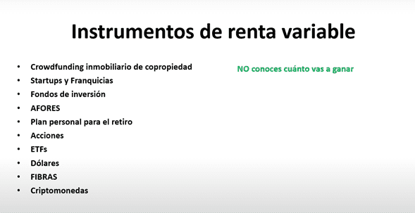 Ahora está lo que es renta variable, aquí es cuando no sabes cuánto vas a ganar, ni siquiera sabes si vas a ganar, puede que pierdas y no sabes cuándo vas a volver a ver tu capital.