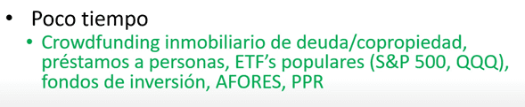 Si quieres algo a mediano plazo que para mí son 2 o 3 años te recomiendo el fondeo colectivo inmobiliario de deuda.