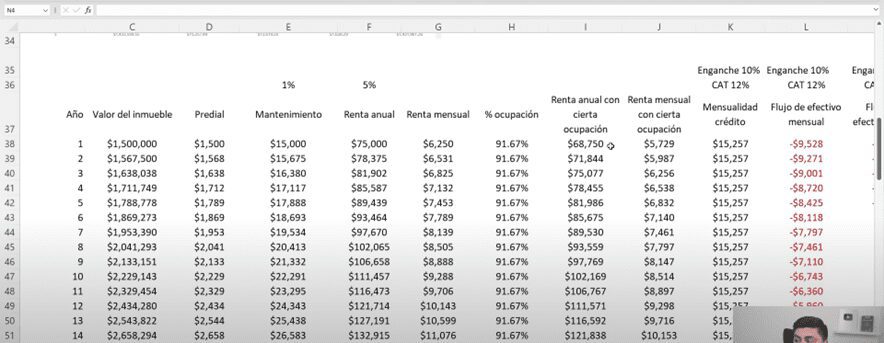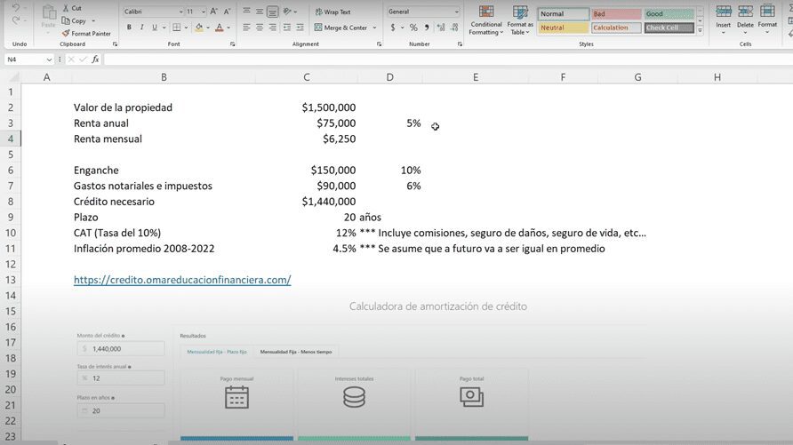 El ejemplo es sobre una propiedad con un valor de $1.5 millones de pesos y lo vas a rentar alrededor de un 5% del valor de la propiedad.