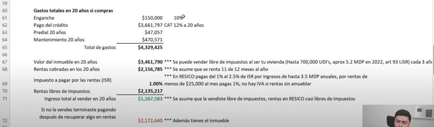 También, a lo largo de esos 20 años tu recibiste $2.1 millones de pesos en rentas antes de impuestos.