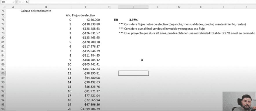 Y al final consideramos que vendemos el inmueble para ver realmente de todo ese flujo que pusimos al final que quedó.