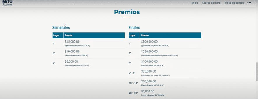 Podemos ver que van a dar premios semanales durante cada semana por las 6 semanas qué va a durar el reto y aparte a los que mejores resultados tengan al final.
