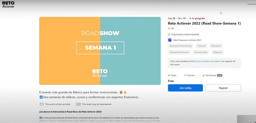 Incluso este lunes 26 de septiembre voy a impartir una conferencia para el Reto Actinver 2022, si quieres la puedes tomar y si no va a quedar grabada.