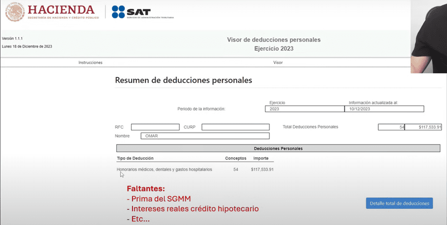 Ya que inicies sesión te van a salir las deducciones personales para el 2023, te voy a mostrar como se ve mi cuenta.