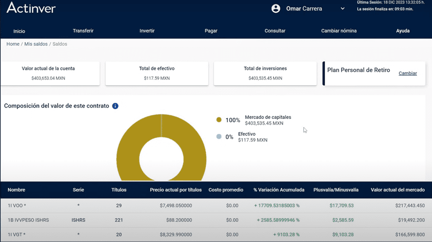 Pero no todo está en mi plan personal para el retiro, lo que me gusta de Actinver es que me fusiona lo de mis inversiones en acciones, mis inversiones en ETFs y aparte lo de mi plan para el retiro.