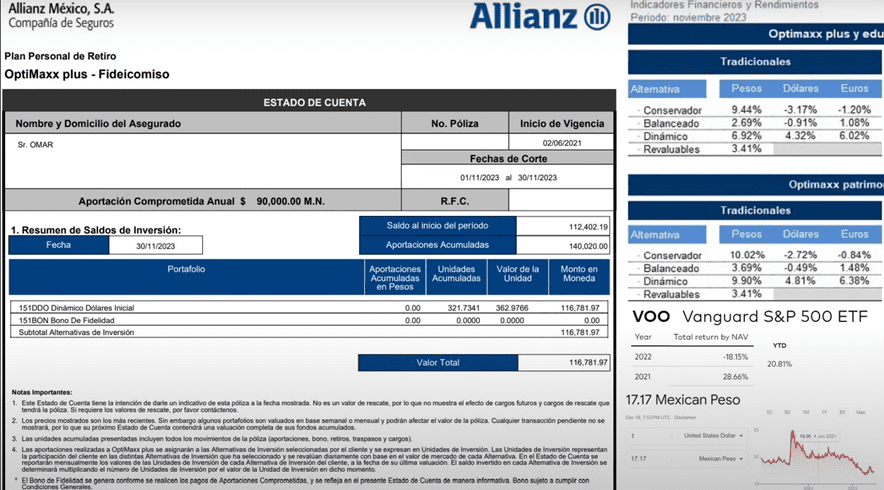Yo al de Allianz le puse $140,000 pesos y te dan ahí un bono si aportas constantemente, pero si dejas de hacer aportaciones lo pierdes.