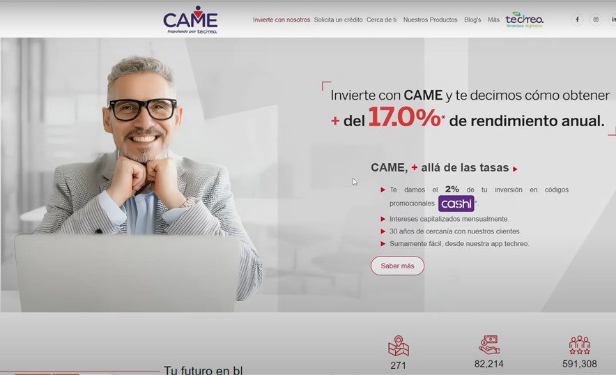 CAME lleva tiempo captando recursos de manera agresiva, incluso en su página aún tienen que ofrecen un rendimiento del 17% anual.