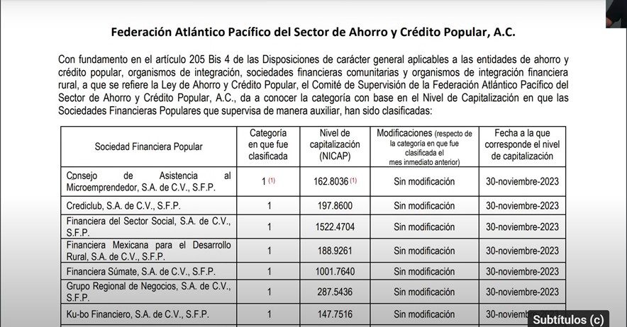 Sus indicadores financieros y el NICAP no son sanos y esto es lo que afecta la SOFIPO.
