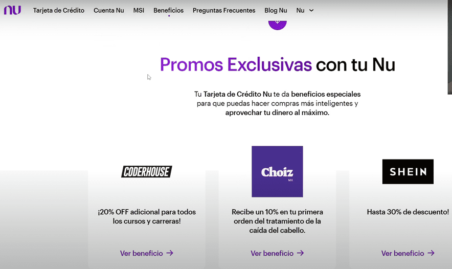 Nu también ofrece compras a meses sin intereses, pero al momento de ver las promociones con establecimientos solo me aparecen 3.