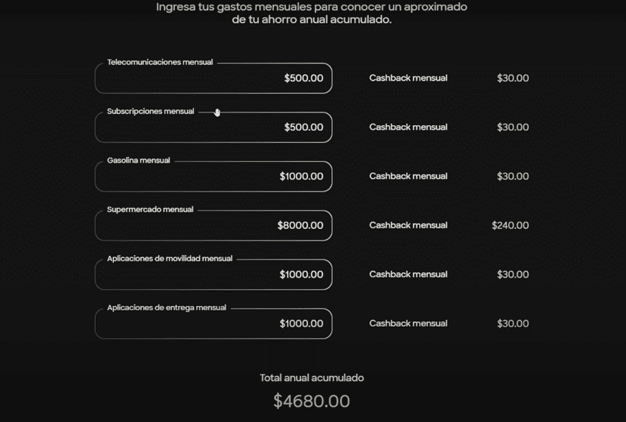 Con estos gastos podrías tener un cashback al año de $4,680 pesos.