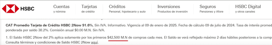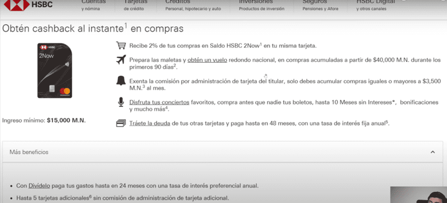 La segunda tarjeta que recomiendo es del banco HSBC, llamada 2Now.